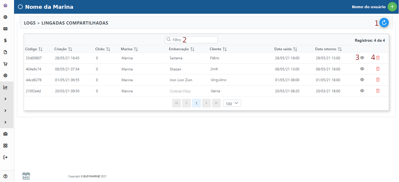 3 - Ao clicar no "olho", permite ver a lingada (através do google maps) que foi compartilhada utilizando o App Cliente.