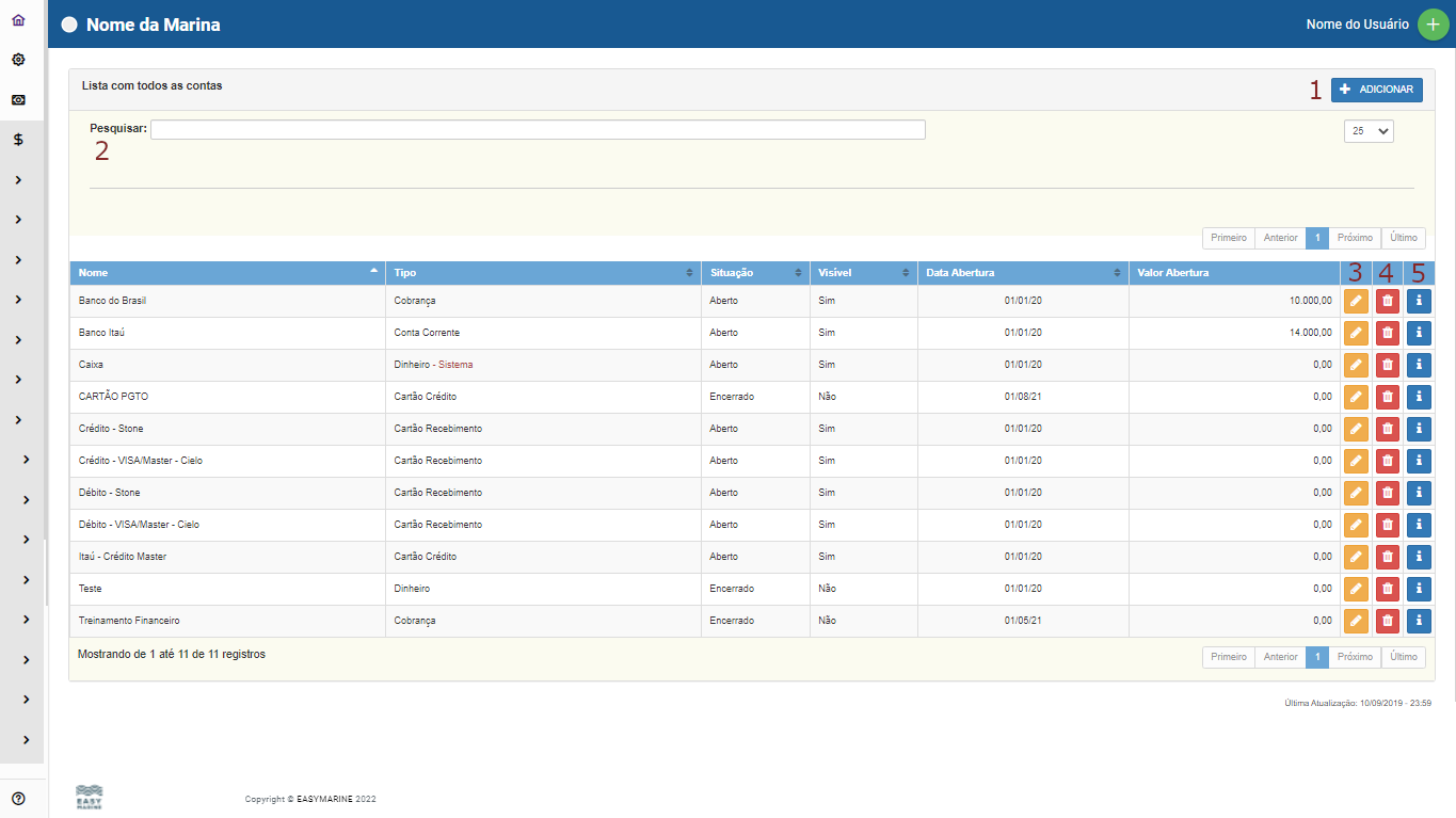3- Editar Conta, caso após inserir seja necessário fazer alguma alteração posterior.