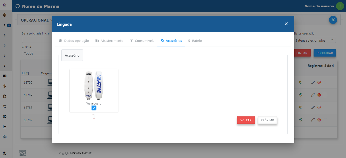 1 - Solicitar os acessórios adicionados no cadastro da embarcação.